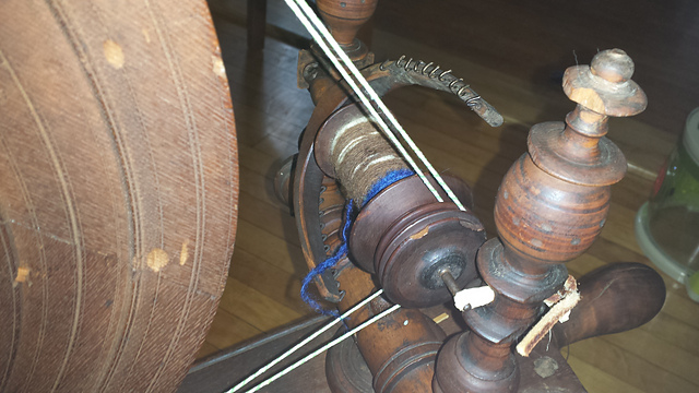 I have purchased my first ever antique.  It's very exciting.  I kept it in check - I wasn't bouncing all over the place being obnoxious; that's just not how I roll.  But I don't think the seller was expecting an actual spinner to buy his spinning wheel, especially intending to actually spin with it.  He was impressed when I showed him where Sleeping Beauty pricked her finger.